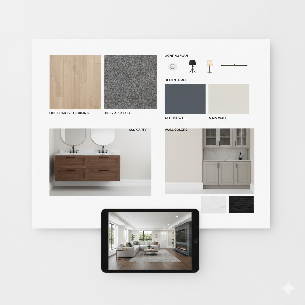 - Flooring: Durable, moisture-resistant options like vinyl plank or engineered wood.