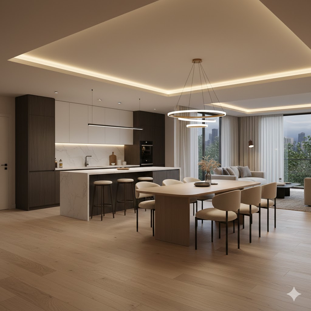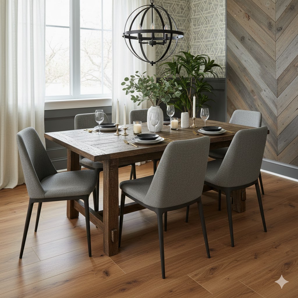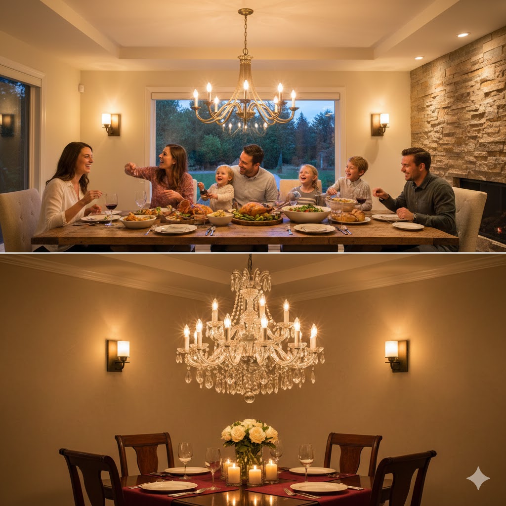 Lighting instantly defines the mood of a dining room. In 2026, layered lighting is trending — combining a statement chandelier with recessed lights, wall sconces, or under-cabinet accents. Warm lighting makes meals feel more intimate and enhances the colors and textures of the room.