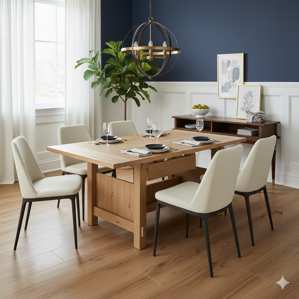 Functionality matters. Many homeowners choose dining tables with extension leaves, cushioned seating for long dinners, and built-in or freestanding storage like buffets or console tables. The goal is to create a space that is both beautiful and highly usable.
